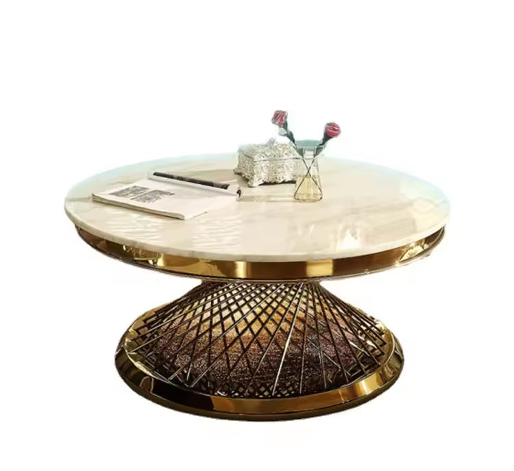 Refined and timeless, the Velencia Round Coffee Table brings an elevated touch to any space. Featuring a luxurious marble top and a sleek shiny gold stainless steel frame, this piece combines elegance with modern simplicity. Perfect as a centerpiece in contemporary living rooms or stylish lounges.